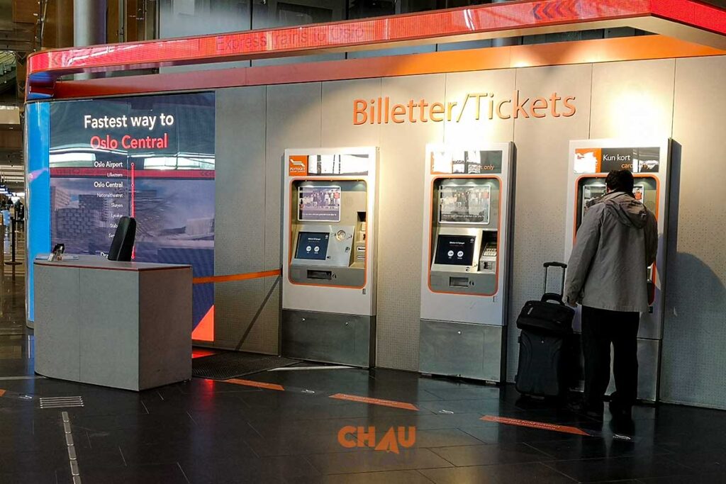 Los tickets los podés comprar en las maquinas expendedoras que encontraras en la sección de arribos, tanto adentro del hall del aeropuerto como afuera. Es super fácil y por suerte, las instrucciones están tanto en noruego como en inglés.