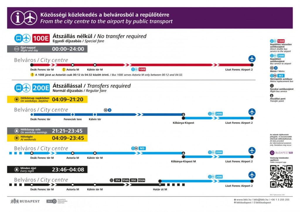 El transporte público en Budapest tiene buena frecuencia. El metro funciona entre las 4:30 AM y las 11 PM y tienen una frecuencia que varía según la línea, la parada y la hora pero, puede ser entre 2 y 14´. El bus 200E, circula las 24 horas. Durante el día, suelen salir buses cada 10′ o 20′ y durante la madrugada, su frecuencia disminuye muchísimo a uno por hora y sale de la estación Határ út en lugar de Kőbánya-Kispest.